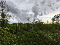 Также телеграм-канал опубликовал кадры последствия прохождения смерча предварительно категории EF2 близ деревни Полибино в Великолукском районе от петербургской команды охотников за штормами.