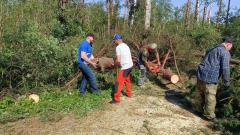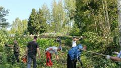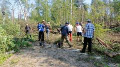 Волонтеры и спортсмены расчищают дорогу к кладбищу в Великолукском районе после урагана