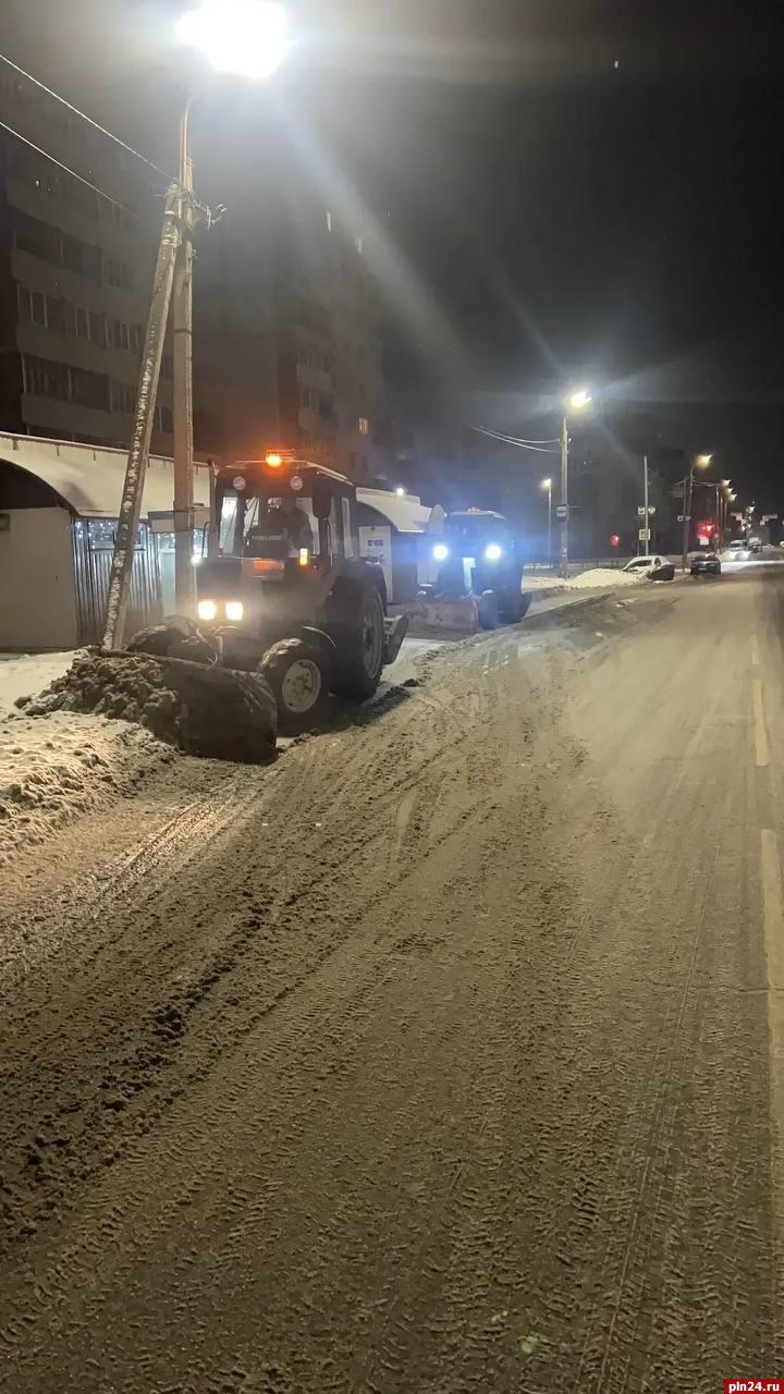 Работы по уборке и вывозу снега продолжаются на улицах города Пскова. Об этом сообщил глава города Пскова Борис Елкин в своём Telegram-канале.
