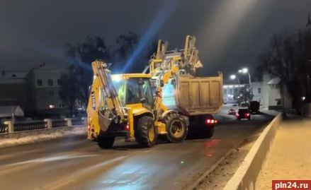 В Пскове продолжают уборку и вывоз снега с дорог города