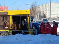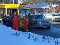 Легковой автомобиль при движении по «кругу» врезался в стоящий маршрутный автобус.