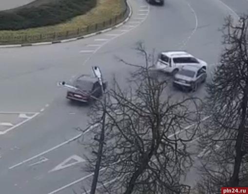 На площади Победы в Пскове произошло ДТП на съезде с кругового движения. ВИДЕО