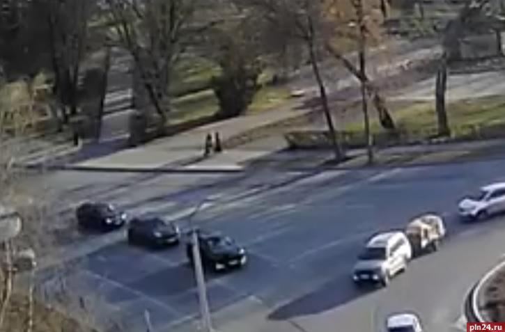 Тройное столкновение автомашин произошло в Пскове на площади Героев-Десантников
