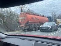 На трассе Псков-Остров, неподалеку от деревни Карпово, бензовозная фура съехала в кювет, передает корреспондент Псковской Ленты Новостей.