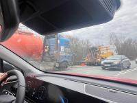 Грузовик оказался в придорожной канаве, нарушив движение на трассе. На месте работают сотрудники ГИБДД.