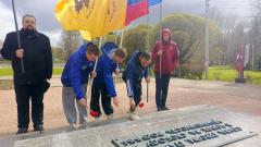 Завершился автопробег на территории братского кладбища, где было совершено очередное возложение цветов к памятному знаку героев.