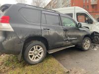 После по удара по инерции Toyota Land Cruiser наехал на бордюрный камень с последующим наездом на стоящий микроавтобус Mercedes-Benz 22360С, который совершил боковой удар с припаркованным рядом BMW 520D.