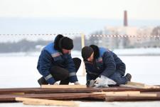 Для обеспечения безопасности на льду будут установлены надежные настилы, оборудованные лестницами с поручнями и специальными ограждениями.