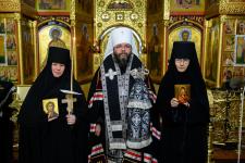 За богослужением молились клирики обители, настоятельница монастыря игумения Рафаила (Позигунова) с сестрами, прихожане и паломники.