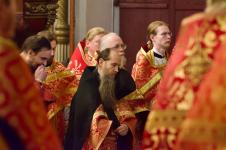 Праздничное богослужение возглавил митрополит Псковский и Порховский Матфей в сослужении всего духовенства епархии.