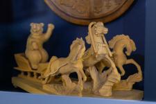 И третья выставка, о которой я хочу сегодня немного рассказать, открыта в усадьбе купца Шведова и называется «От отца к сыну, от художника к мастеру!». Выставка названа так потому, что посвящена Году педагога и наставника и памяти мастеров, оказавших влияние на развитие местных художественных промыслов в России. Это совместный выставочный проект двух музеев: музея-заповедника «Абрамцево» Московской области и музея-заповедника «Изборск». Сразу оговорюсь, что выставка будет особенно интересна тем, кто занимается художественной резьбой по дереву.