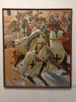 Что можно сказать о живописи Евгения Емельянова? Разумеется, он – мастер, все каноны высокого академизма соблюдены. Отточенный рисунок, выверенная живопись. Его художественная концепция – преображение страшного дела войны. На картинах есть поверженные, но нет крови, воины не унижены болью и страданиями. Настоящий бой – это мясорубка и потоки крови. Отрубленные руки и ноги, проломленные черепа. У Емельянова битва – почти праздник, парад, который внушает не ужас, а гордость и уважение. Это – своего рода романтизация, героизация средневековой войны.