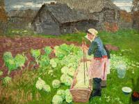Вот буквально проникающая в жизнь, поразительно цельная по замыслу и раскрывающая перед нами людские судьбы работа «Рыбаки Псковского озера» кисти Петра Оссовского образца 1972 года, представителя сурового стиля; гипнотизируют его же «Золотые лодки» 1979 года или портрет пожилой женщины, названный «Псковитянка» 1986 года; вот «Дальний рейс» 1948 года, может быть, не самая знаменитая работа культового ныне советского художника Александра Дейнеки; многие зрители буквально застывают перед картиной Алексея Ткачева «Осень в деревне» 1962 года, наблюдая, как крестьянка рубит капусту на своем огороде, – бытовой и одновременно поэтичный эпизод уже уходящей от нас деревенской жизни; вот элегичный пейзаж Андрея Макарова «Кончилось северное лето» 1968 года, вызывающий легкую грусть и ностальгию; а вот актуальная и трогающая за сердце картина современного художника Александра Новоселова, названная им «Скорбь»: мужчина закрывает лицо рукой, пряча слезы, а на столе поминальные стаканы с водкой, накрытые хлебом…