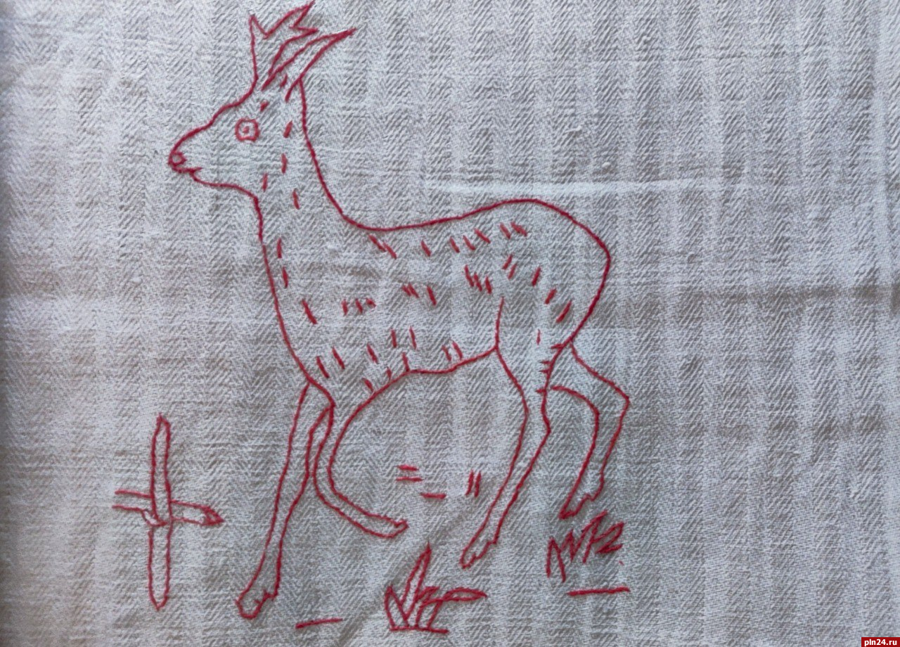 Другая выставка, о которой я хочу сегодня рассказать, открылась и работает в доме-усадьбе купца Шведова и наверняка будет интересна ценителям этнографии. Выставка называется «Краше цвета алого» и представляет замечательные образцы вышивки и ткачества из собраний Государственного музея-заповедника «Изборск», Витебского областного краеведческого музея и Витебского областного методического центра народного творчества. То есть это еще один наш межмузейный проект, сделанный вместе с коллегами из братской Белоруссии.