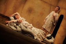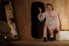 В спектакле «Ревизор» режиссер исследует тему пустоты и ее природы на примере одной из самых знаменитых пьес Гоголя и пытается найти новый язык для разговора на знакомую каждому тему. Хлестаков в исполнении артиста труппы Театра Вахтангова Максима Севриновского закручивает действие вокруг себя. Он единственный персонаж, наделенный человеческими чертами и вызывающий эмоциональный отклик. А еще одним, незримым, но важным персонажем спектакля неожиданно становится... выдающийся композитор Олег Каравайчук.