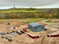 За минувшую неделю подрядчик смонтировал кровлю и «одел» контур здания сэндвич-панелями, далее – внутренние работы. Параллельно идет активная работа по прокладке сетей к котельной.