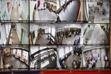 В зале представили большую стену размером 3х2 метра, на которую будут проецировать видеонаблюдение с избирательных участков. За один раз можно увидеть работу 36 участков.
