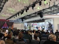На площадке Ханты-Мансийского автономного округа — Югры умело сочетаются древние инструменты и дополненная реальность. Перед вами либо оживает мамонт, либо можете услышать, как звучит нарс-юх - традиционный струнный щипковый инструмент хантов, название которого переводится как «играющее дерево».