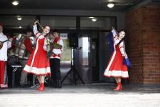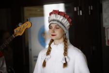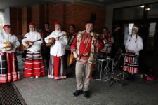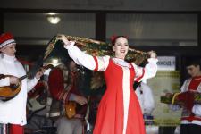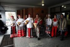 Заслуженный коллектив народного творчества России — ансамбль «Сказ» имени Румянцева и маскот Барсик встречают избирателей на площадке Псковского педагогического комплекса 17 марта, передает корреспондент Псковской Ленты Новостей.