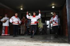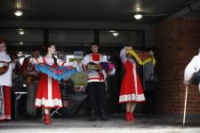 Ансамбль «Сказ» и Барсик встречают избирателей в Пскове. ФОТО