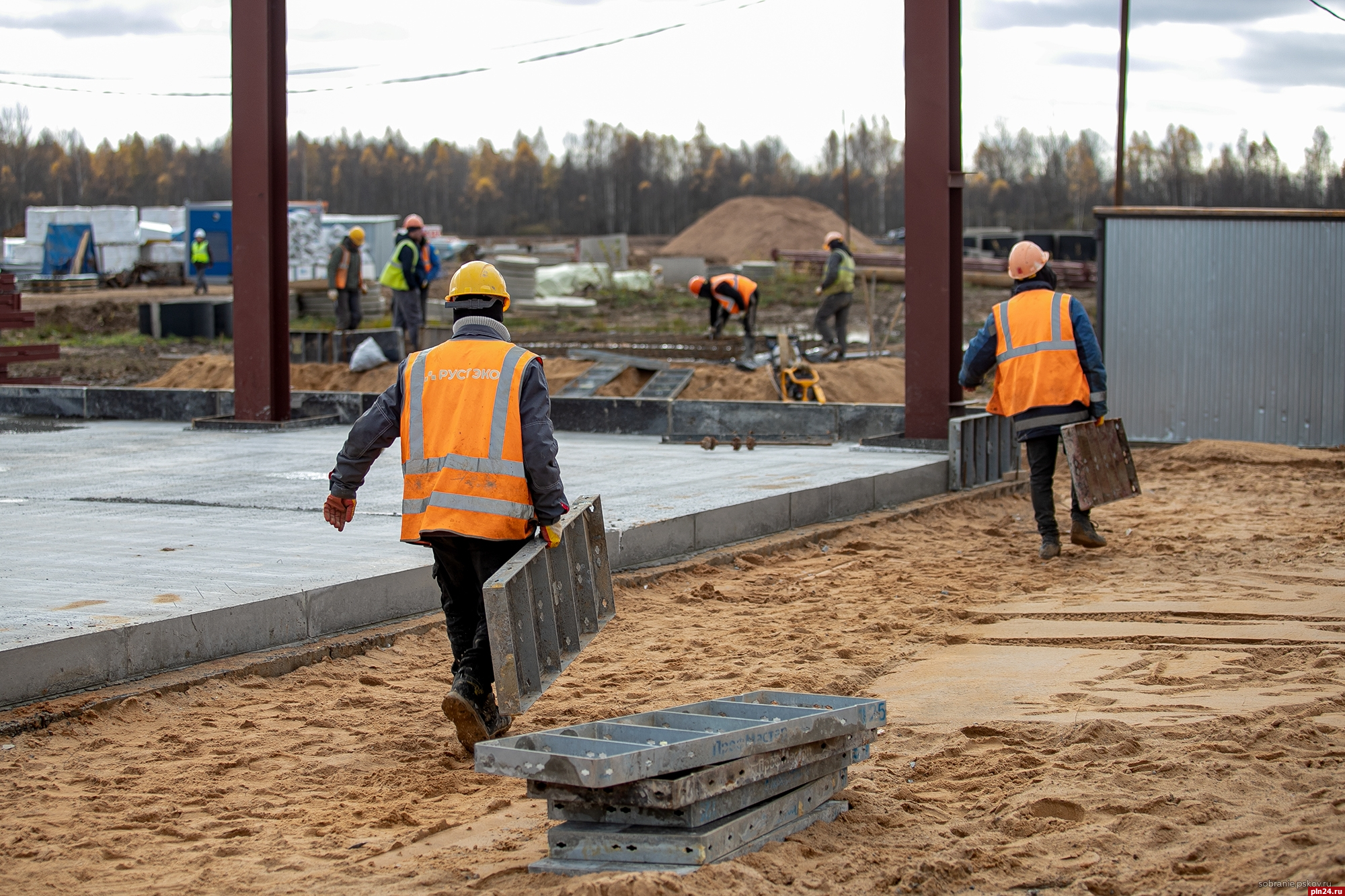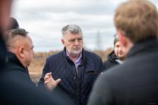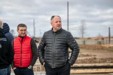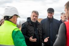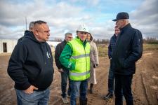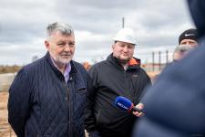 На стройплощадке депутатов встретили представители заказчика и подрядчика: генеральный директор ООО «Псковэкострой» Валерий Петров и главный инженер компании «РУСТЭКО» Евгений Пуздырёв. Сейчас на объекте работает более сотни рабочих и инженерно-технического персонала, 22 единицы техники. По словам специалистов, технологический процесс очень непростой – подобных комплексов ни с технической, ни с финансовой точки зрения в регионе не строилось.