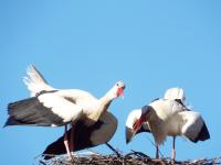 В своё гнездо близ Савкиной горки в «Михайловском» вернулась пара аистов