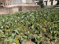В Пскове расцвели тюльпаны, сообщают Псковской Ленте Новостей псковичи.