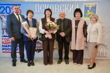 Поздравить собравшихся также пришли почётные гости. Председатель окружного Собрания депутатов Валерия Фомина вручила награды муниципального парламента, а депутат Андрей Ключко передал поздравления и награды от Ассоциации «Совет муниципальных образований Псковской области» и #ВАРМСУ.