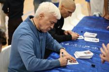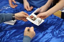 Несколько часов подряд спортсмены тепло общались с юными футболистами и их болельщиками. Именитые гости с удовольствием раздавали автографы — на памятных карточках, футбольных мячах и спортивной форме.