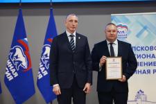 Председатель Псковского областного Собрания Александр Котов вручил за личное участие в волонтерской миссии партии «Единая Россия» благодарственное письмо руководителя Центрального исполнительного комитета партии главе Дедовичского муниципального округа Руслану Ахтямову, председателю Собрания депутатов Гдовского муниципального округа Ольге Галаховой, генеральному директору общества с ограниченной ответственностью «Частная охранная организация «Байкал» Дмитрию Ксилицину, индивидуальному предпринимателю Олегу Шипилину и директору филиала «Государственная телевизионная и радиовещательная компания Псков» Наталье Юрченко.